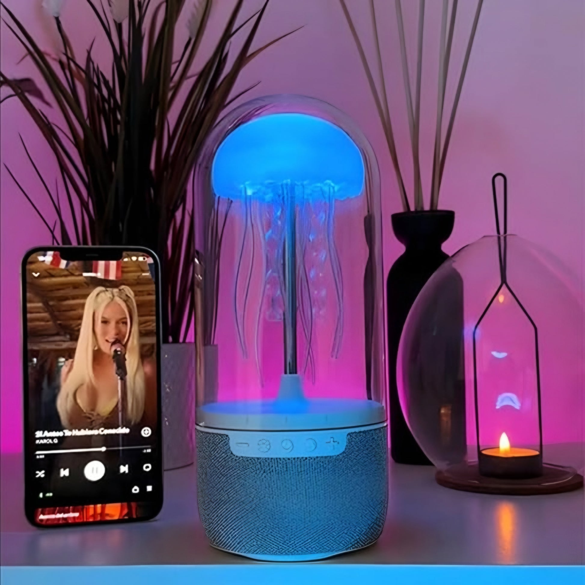 Imagina una noche tranquila, tu música favorita llenando el aire mientras las medusas danzan con una luz suave y relajante. Melodusa Beats Essential no es solo una lámpara; es el ambiente perfecto para desconectar, compartir un momento romántico o simplemente disfrutar de una paz inigualable. El regalo que transformará sus noches en momentos mágicos.